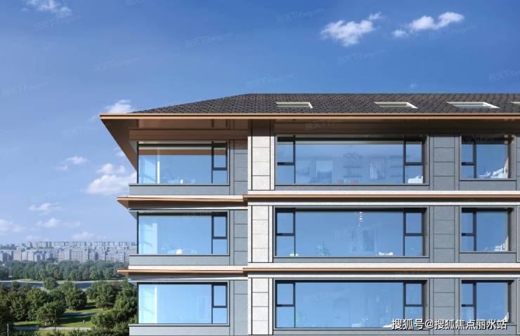 立面为三面大面铝板的建发新中式气概