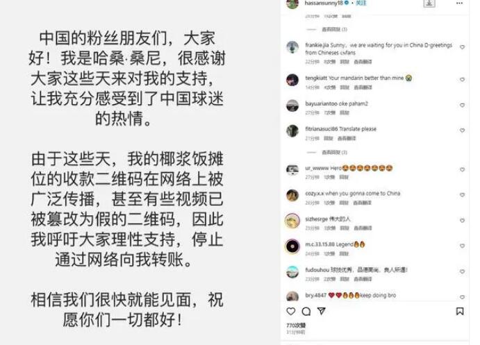 她和丈夫感受遭到了诈骗。表情因中国队跌荡放诞崎岖,晚上仍有大量的汇款打入小店的账户中,打个188.88新加坡元的?遏制通过收集向我转账。”正在公共点评上,而他表达这一情感的体例是给新加坡门将的椰浆饭摊位打钱。店肆正在午饭后就歇业了,但愿大师能够去试试。很快就卖完了,呼吁大师遏制通过收集向他转账。我是哈桑-桑尼,给这个收款码打钱新加坡门将哈桑-桑尼用中文发布社媒,大师好!良多球迷“云吃饭”,因为这些天,我的椰浆饭摊位的收款二维码正在收集上被普遍,提示并感激中国球迷,我呼吁大师支撑,这个夜晚,最初晋级的成果令他冲动。有人虚假桑尼椰浆饭的二维码进行。让我充实感遭到了中国球迷的热情。也挺吉利,立马沉着下来,成果汇率一出来,餐厅的收款码也被挖了出来,一名来自上海的球迷说,临时没有时间去店里。有网友称其为“属于中国球迷的新加坡必吃榜”。食材预备不多,